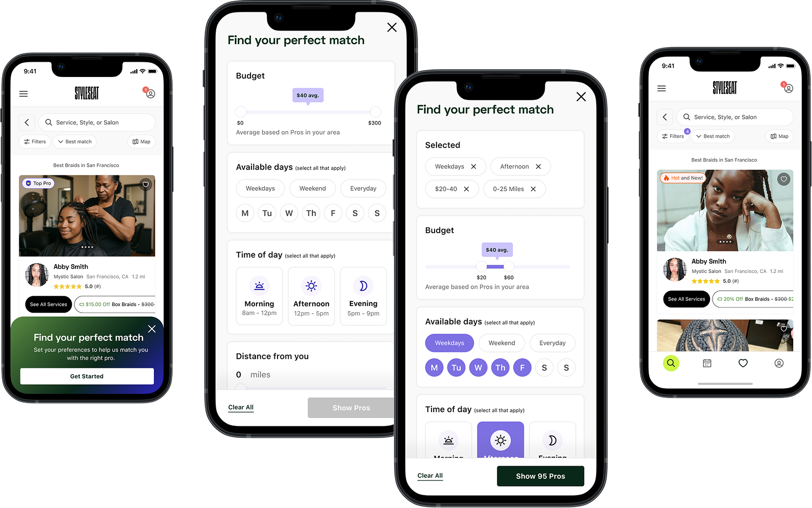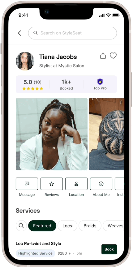 StyleSeat is a marketplace and scheduling platform connecting independent beauty, wellness, and fitness professionals with clients ready to book. Over the past several years, I’ve had the opportunity to lead major product redesigns, reimagine onboarding, and ship high-impact features across the platform. I work closely with Product, Engineering, Data, and Leadership to turn research and experimentation into thoughtful, measurable improvements, and I’ve helped grow our design system to support scale, consistency, and velocity.